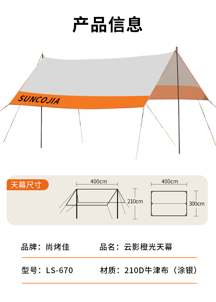 尚烤佳(Suncojia) 天幕(云影橙光) LS-670 400×300×210cm 炫橙色(单位:套)