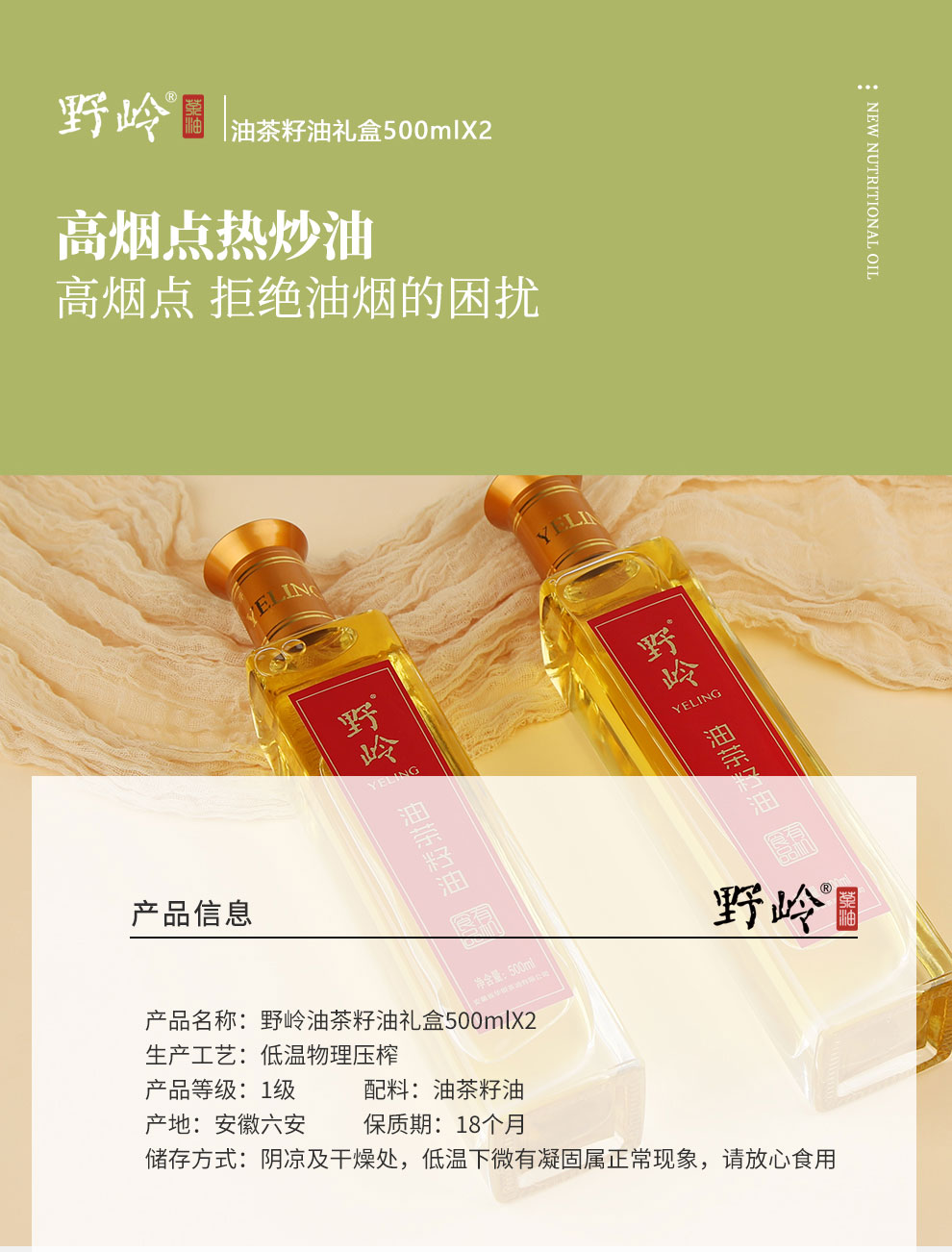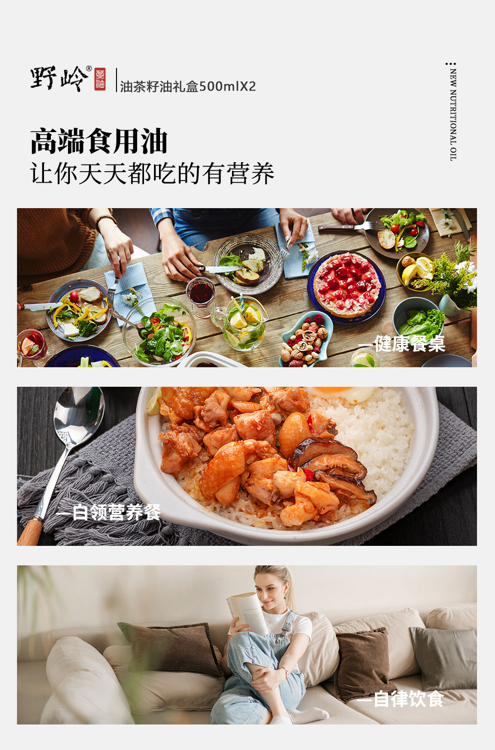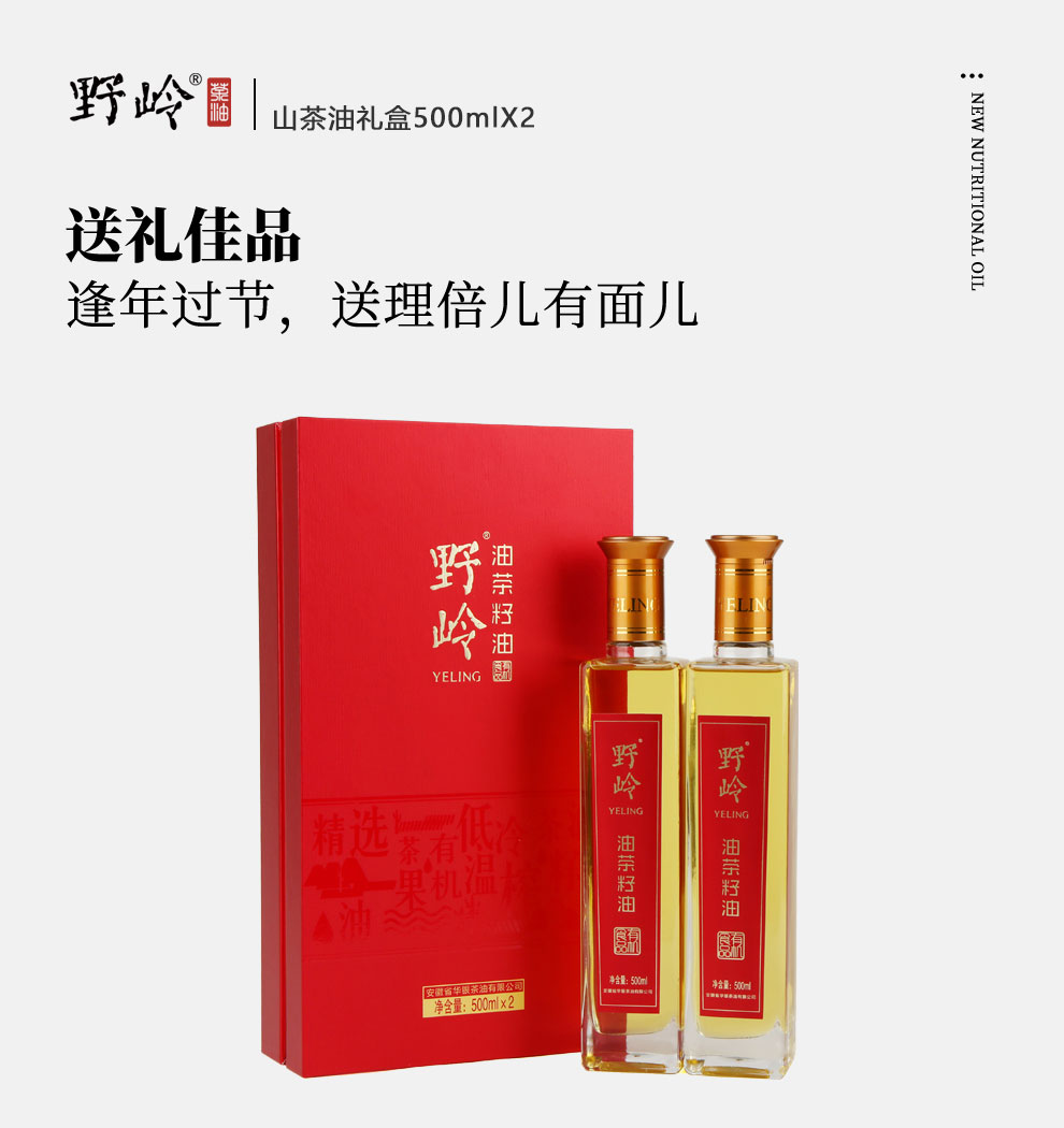 野岭 冷榨有机食用油 至臻山茶油礼盒 500ml*2瓶 混色(单位:盒)