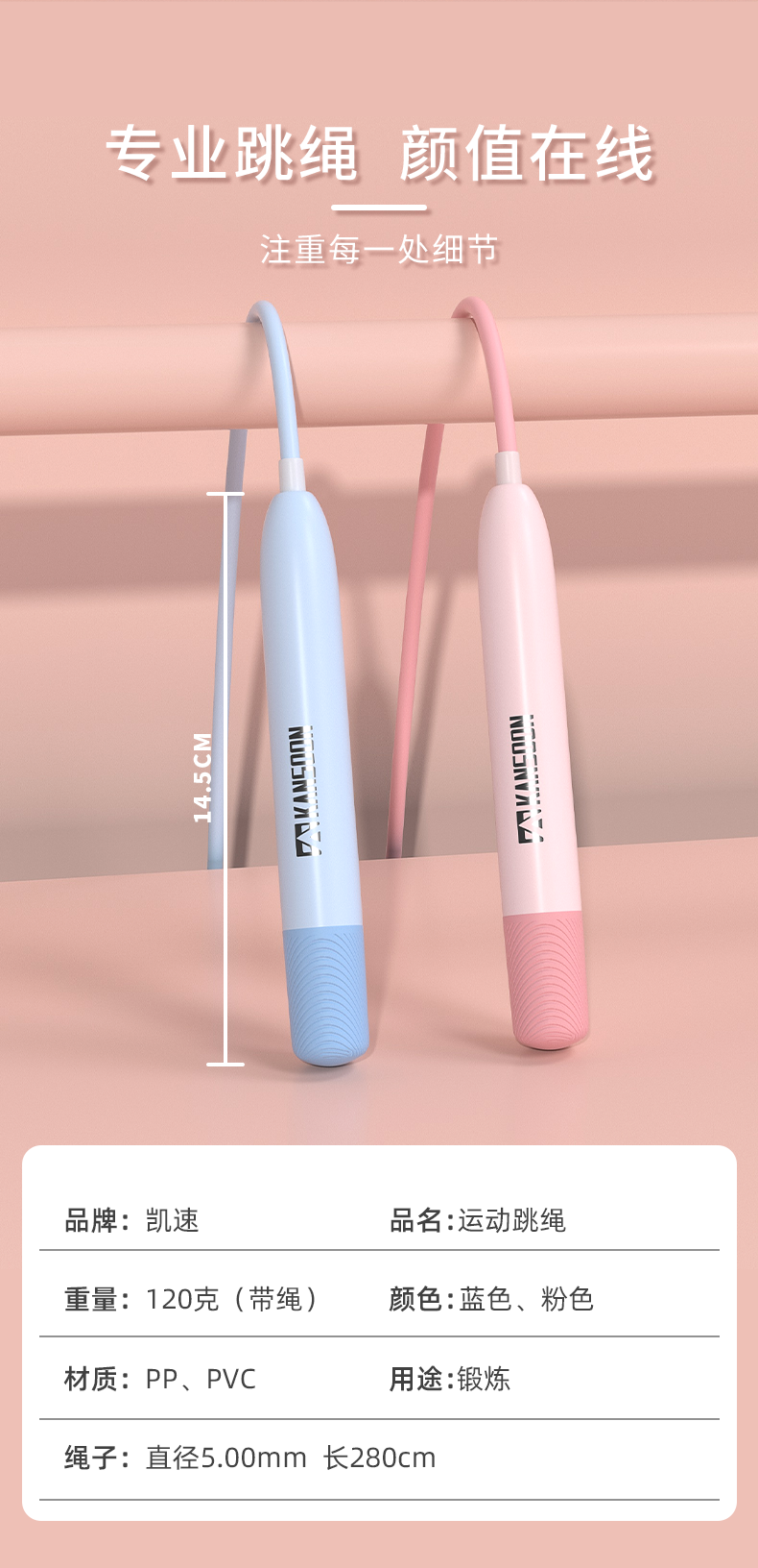 凯速(KANSOON) 成人儿童学生运动跳绳 KJ39 直径5.00mm,长280cm 宝石蓝(单位:条)