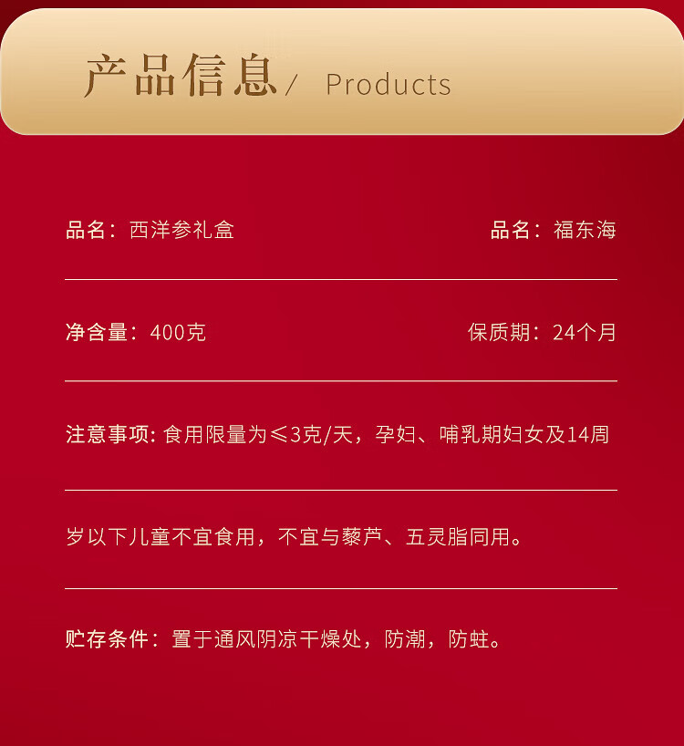福东海(fudonghai) 西洋参 礼盒 400g 红色(单位:盒)