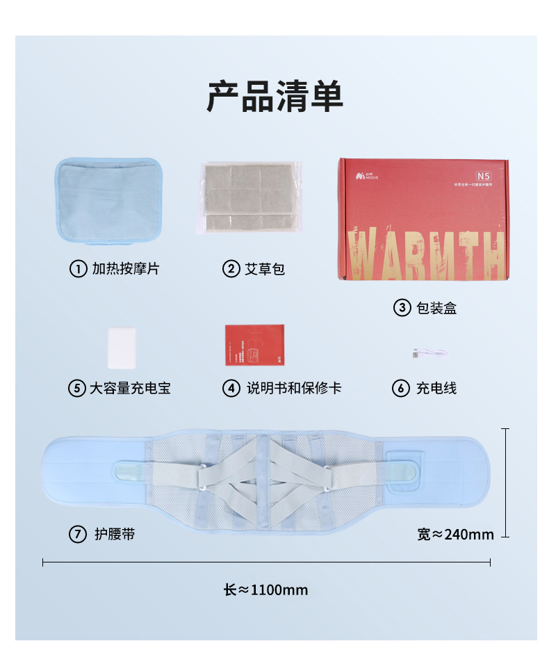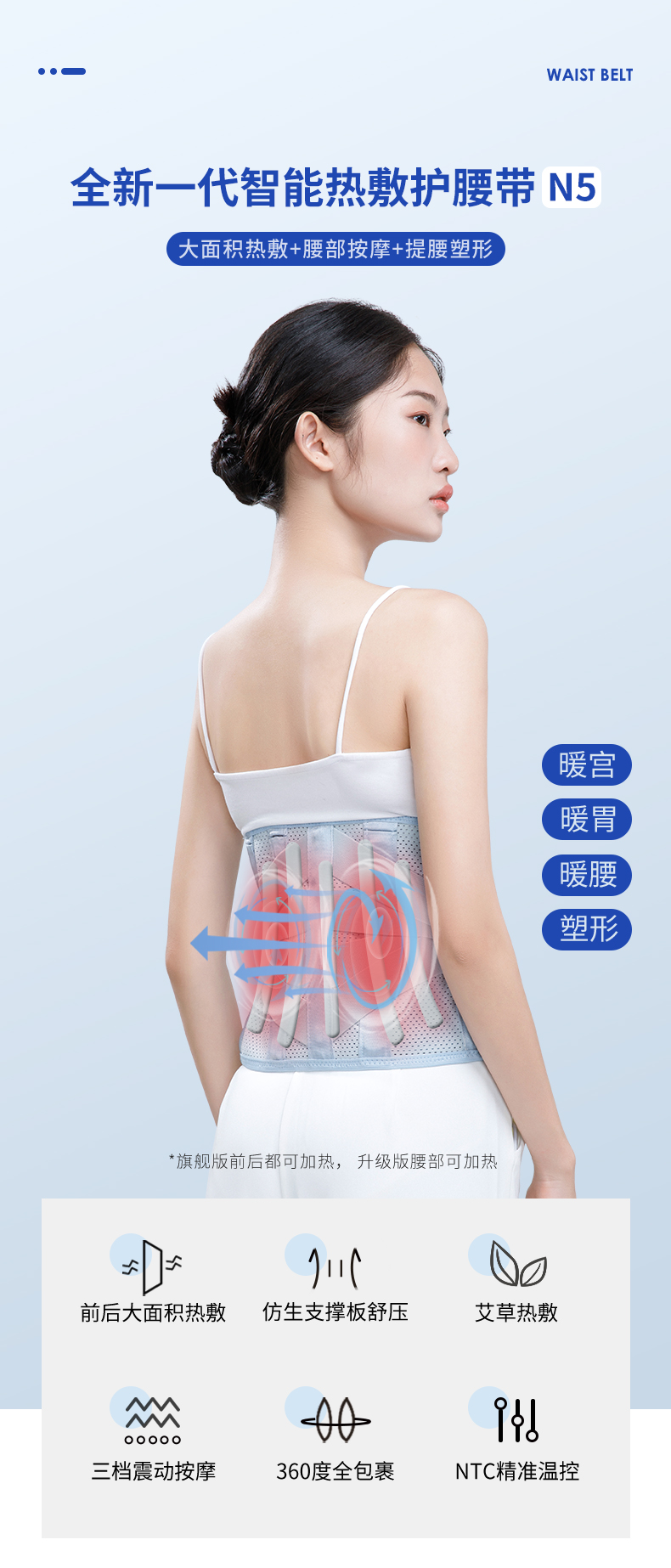 妙界(MIAOJIE) 热敷护腰带旗舰款长续航 N5 10w 蓝色(单位:件)