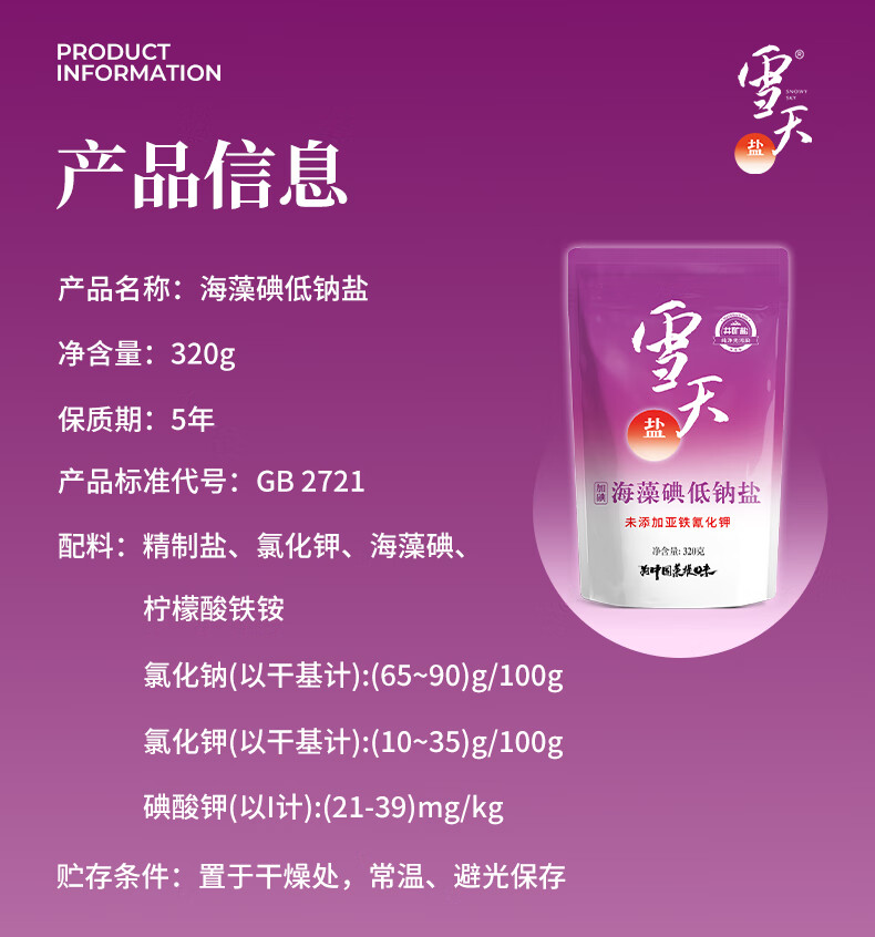 雪天 盐 海藻碘低钠盐 320g*3包 红(单位:组)