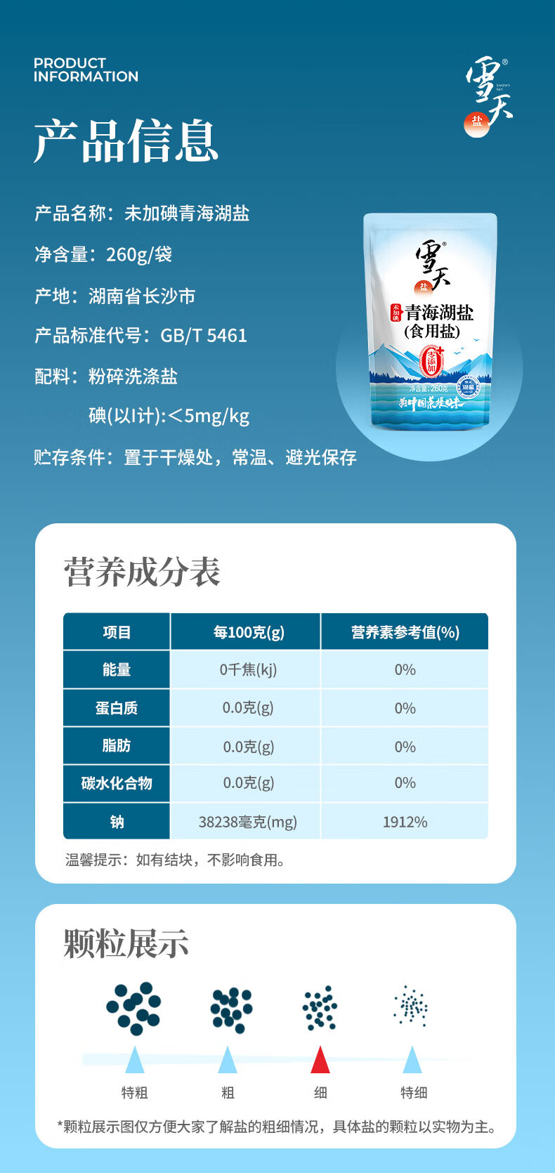 雪天 盐 未加碘青海湖盐 260g*3 蓝(单位:组)