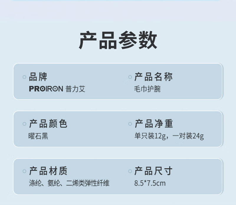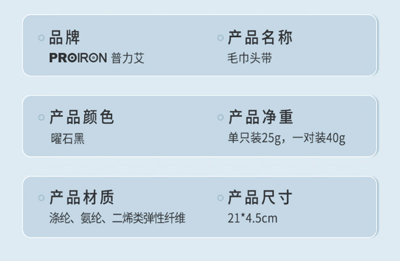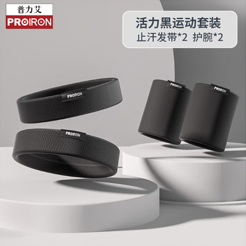 普力艾(PROIRON) 毛巾棉头带护腕 四件 64g 曜石黑(单位:套)
