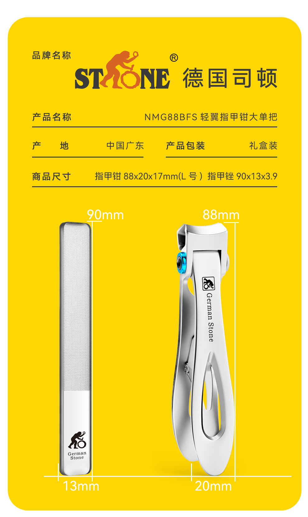 司顿(STONE) 轻翼指甲钳大纳米锉套装 NMG88BF 两件/52*24*103MM 银色(单位:套)