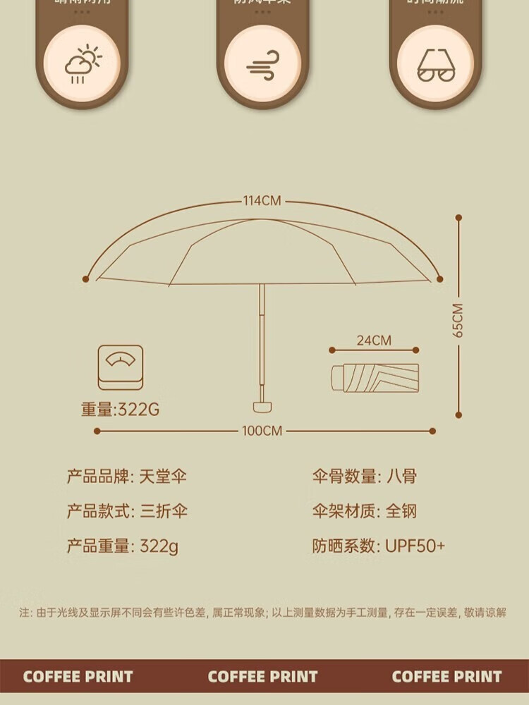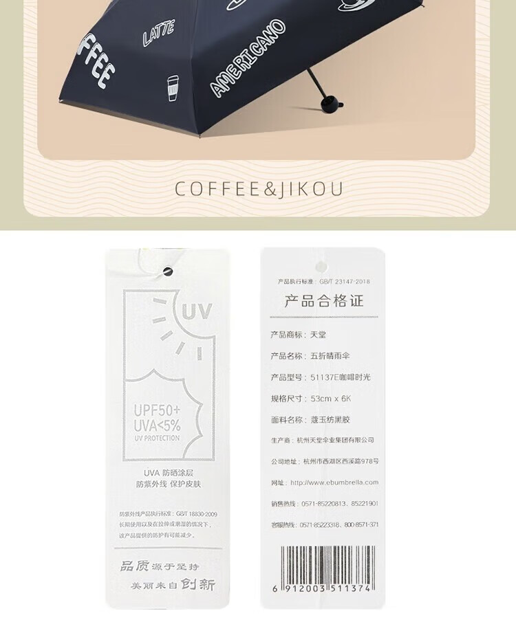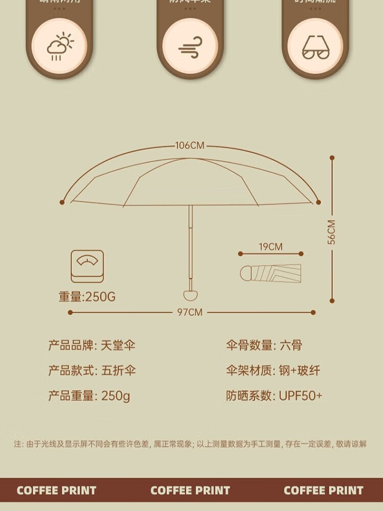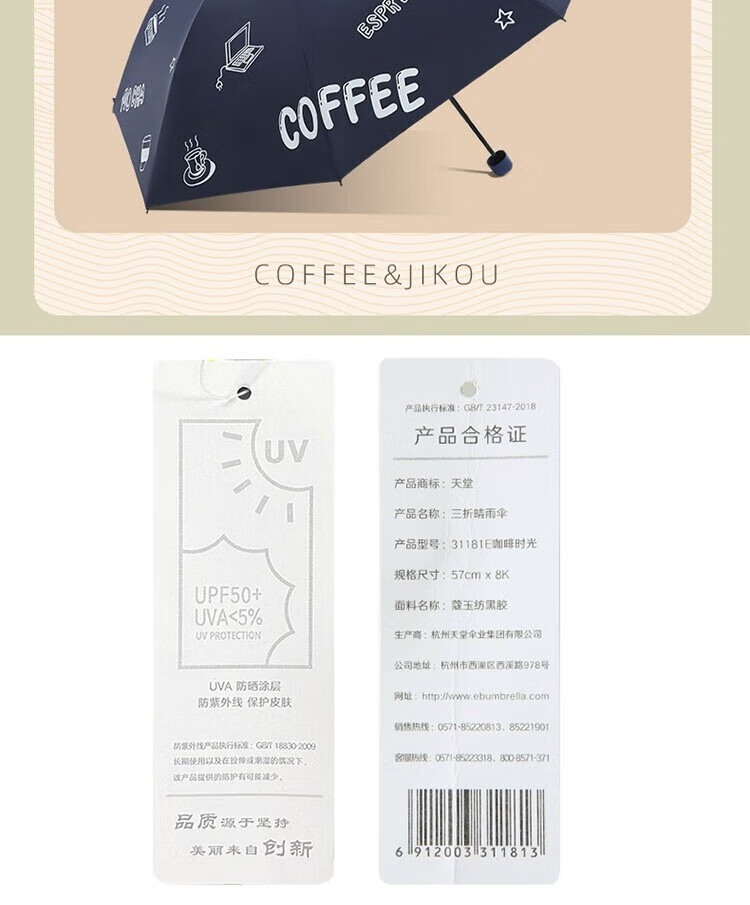 天堂 黑胶防晒防紫外线太阳伞超轻三折晴雨伞 31181E 57cmX8骨 午夜蓝(单位:把)