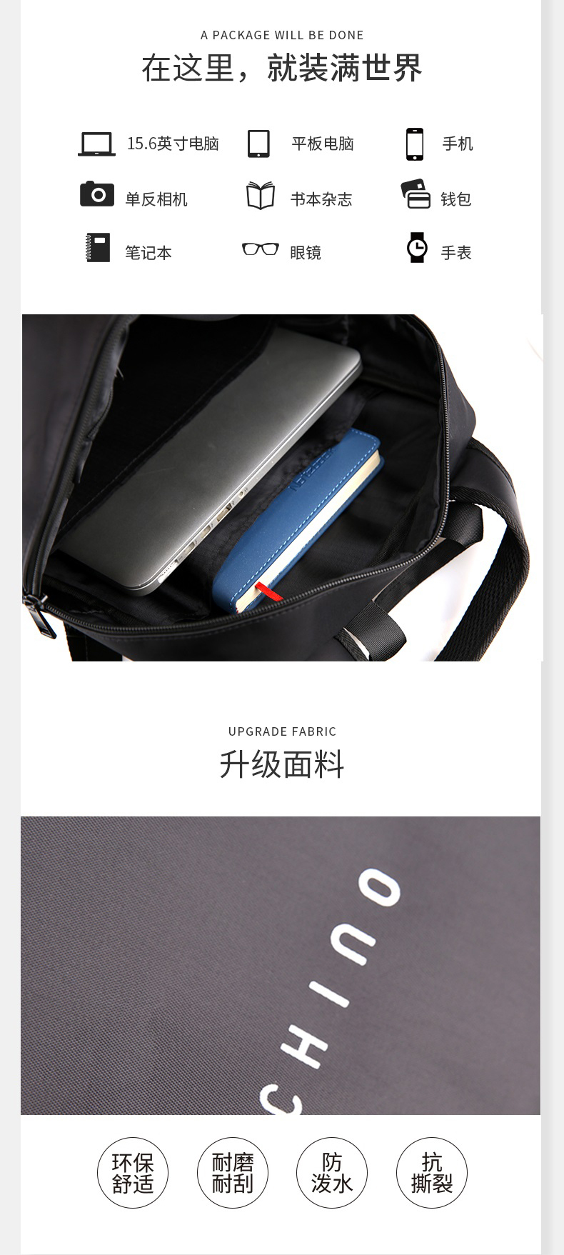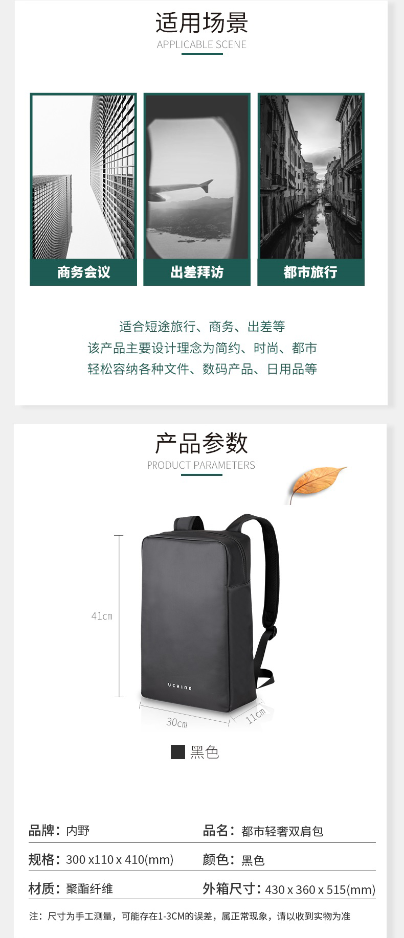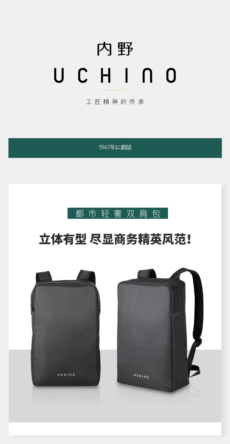 内野UCHINO 都市轻奢双肩包 UC-B003 黑色