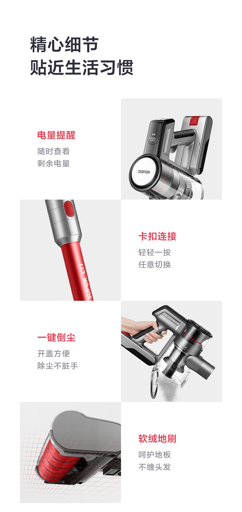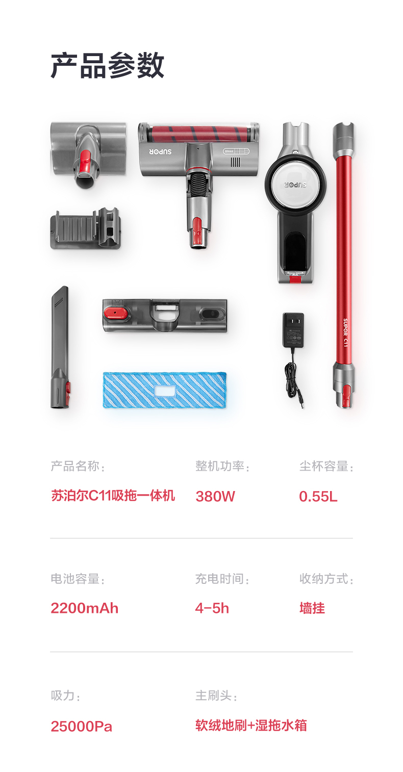 苏泊尔(SUPOR) 吸拖一体吸尘器 VCS63X-C11 2200mah 红色(单位:台)