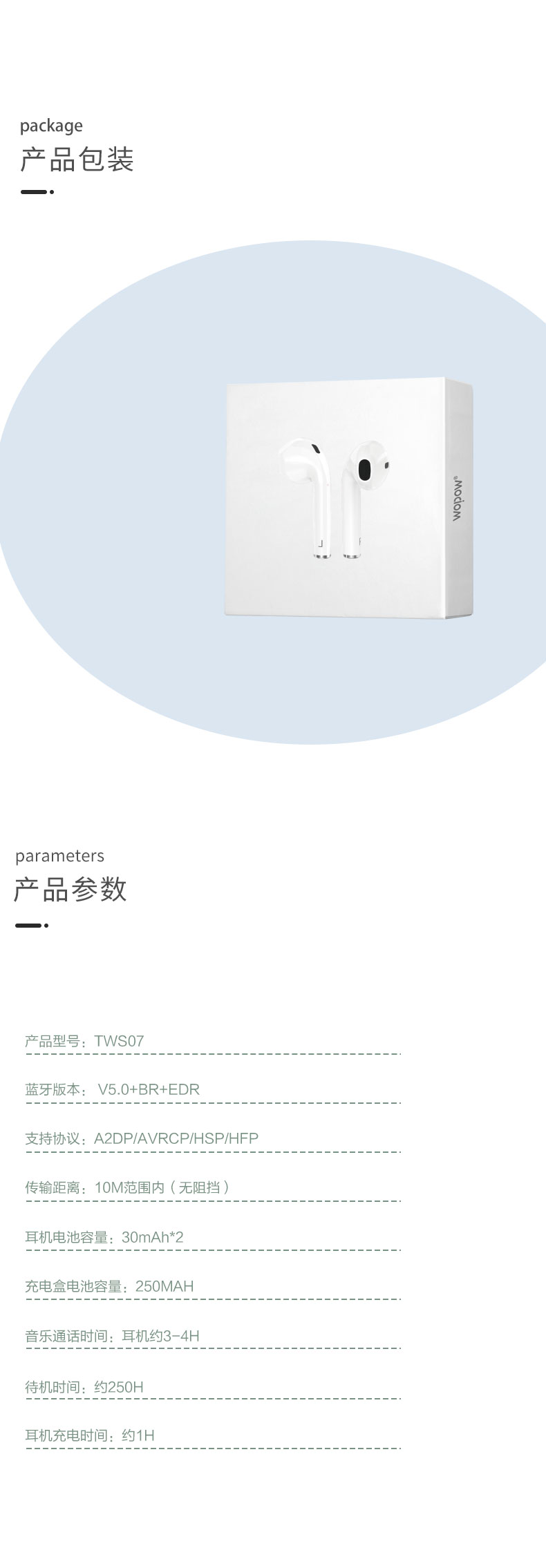 沃品 TWS07蓝牙耳机30mAh*2 单位:副 白色