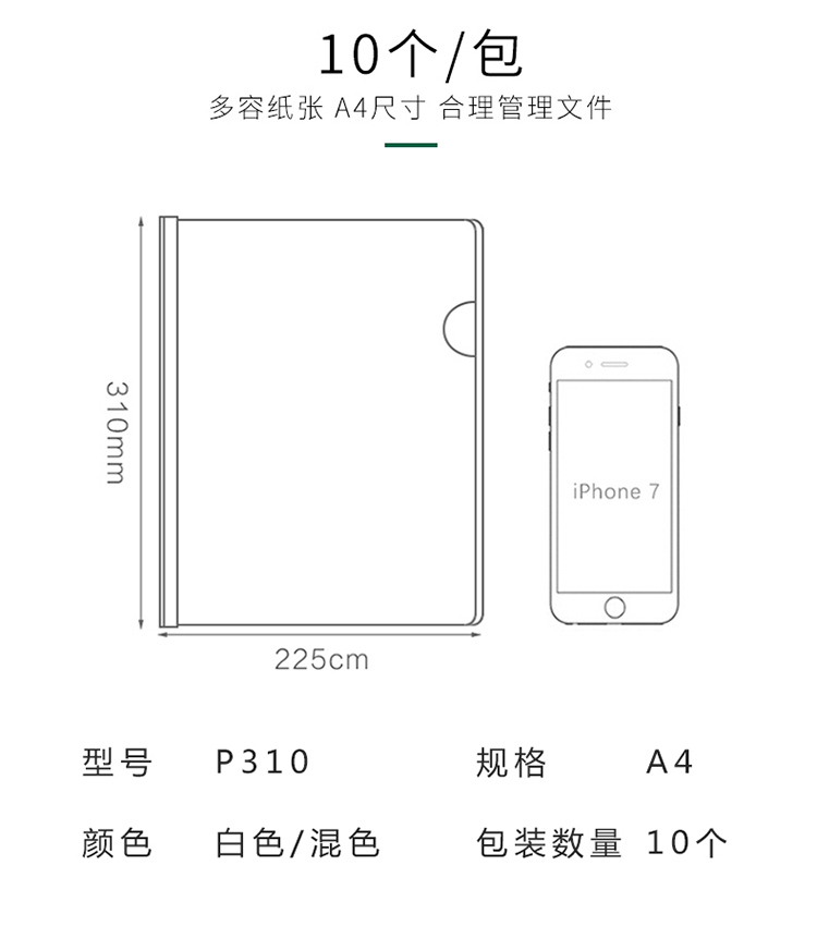 三木 P310 抽杆夹 A4 白色 217*310mm 10个/包 (计价单位:包) 蓝色