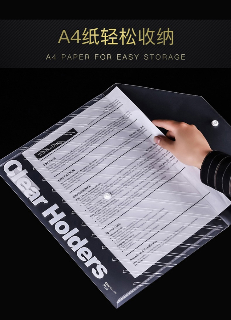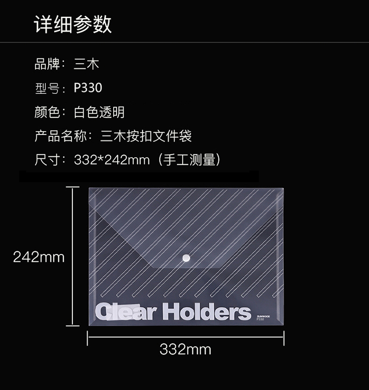 三木 P330 透明暗扣文件袋 10个/包 A4 330*238mm(计价单位:包)