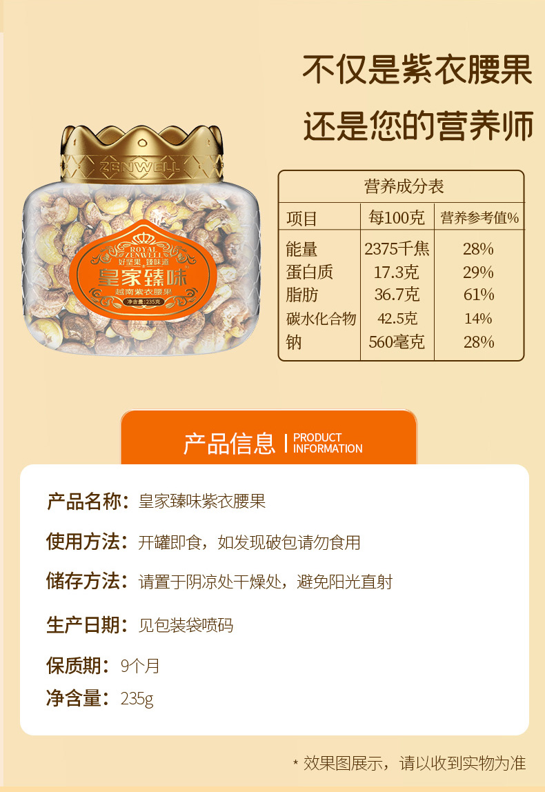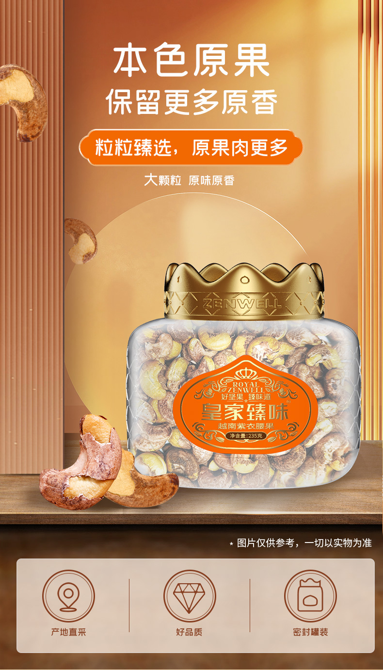 臻味-235g越南紫衣腰果(皇冠)中罐(单位:盒) 自然色