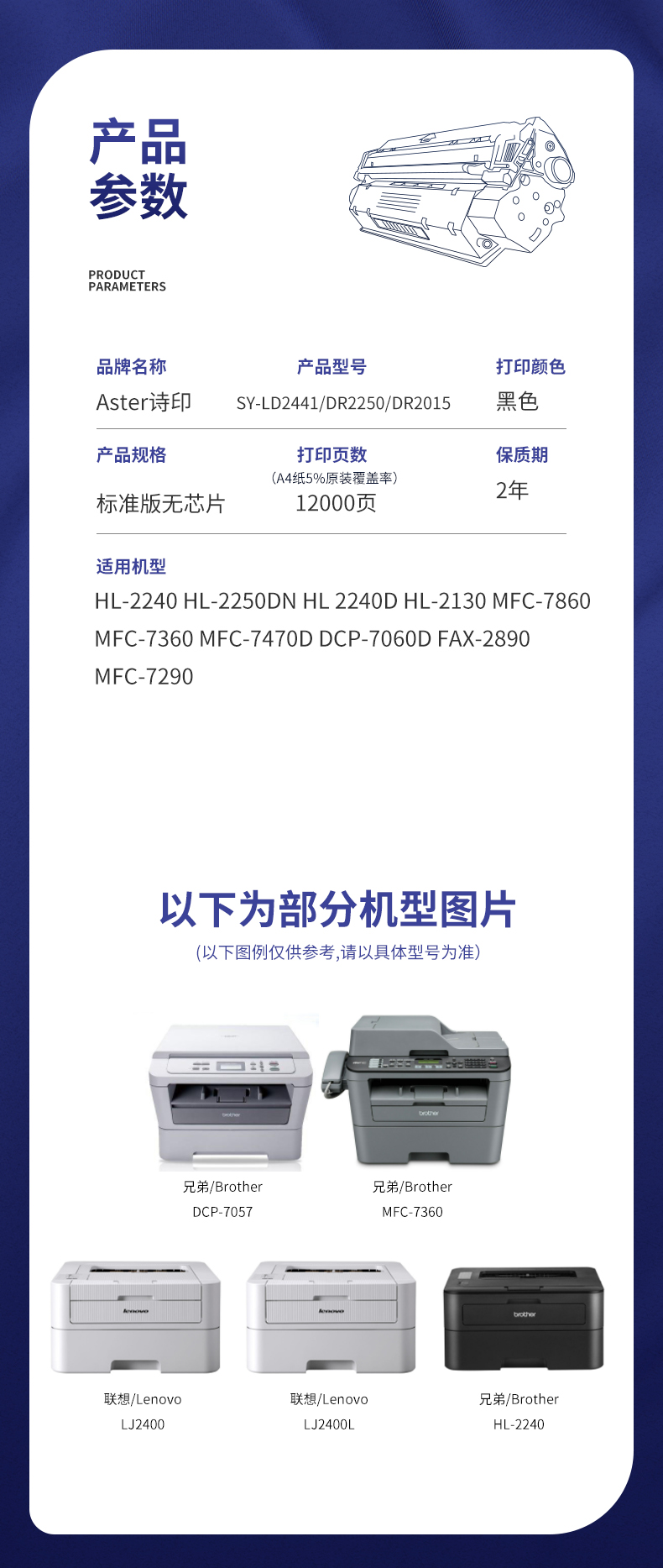 ASTER诗印 政企版LD2441鼓组件适用兄弟2240 2250 2130 7860 7360 7470 2890 7290 7450 7400 7600硒鼓/支 黑色
