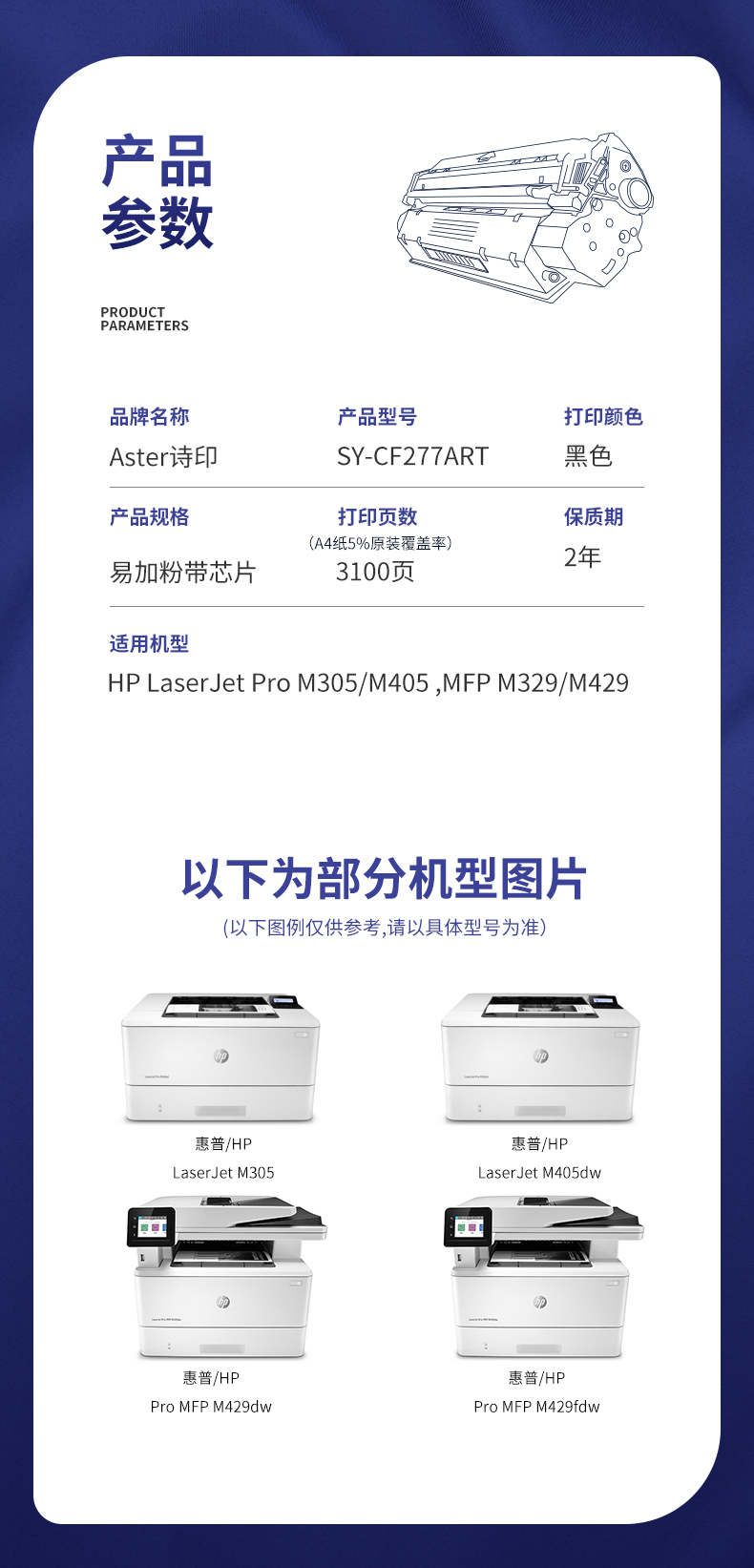 ASTER诗印 政企版CF277ART带芯片易加粉硒鼓适用惠普hp77a M305dn M405d/dw M329dn M429dw/fdw粉盒/支 黑色