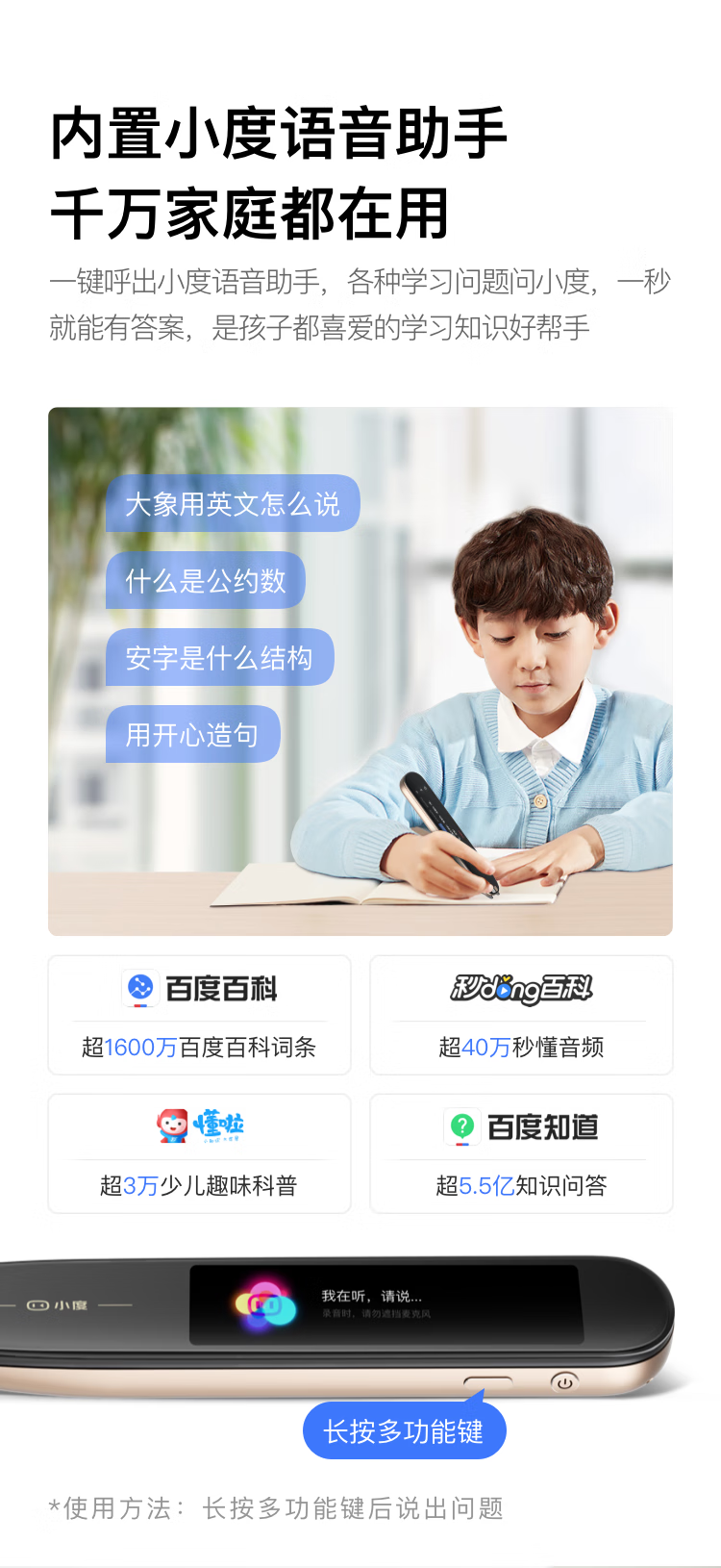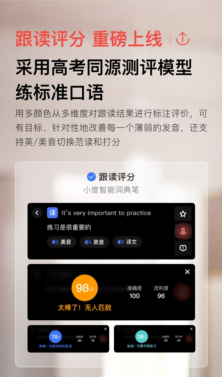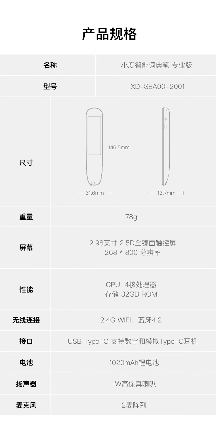 小度智能词典笔专业版 英语点读笔翻译笔扫描笔 365万词库 电子词典学习机X10(单位:台) 金色
