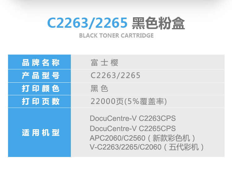富士樱 DC-V C2263/C2265 K 黑色墨粉盒施乐 五代 DC-V C2263CPS 黑色