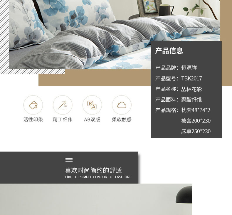 恒源祥 TBK2017丛林花影澳绒四件套200*230cm 丛林花影