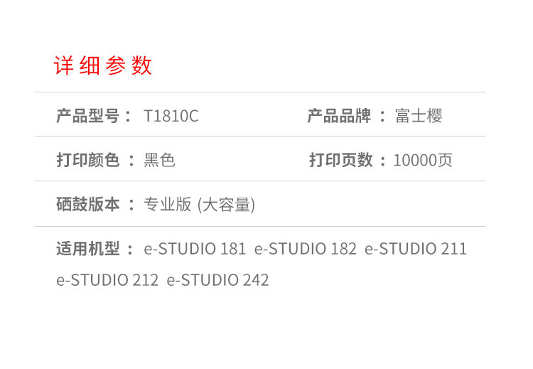 富士樱 T1810C 10K大容量墨粉盒 黑色适用东芝e-STUDIO 181 182 211 黑色