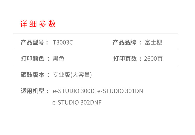 富士樱 T3003C 大容量墨粉盒 黑色适用东芝e-STUDIO 300D 301DN 黑色