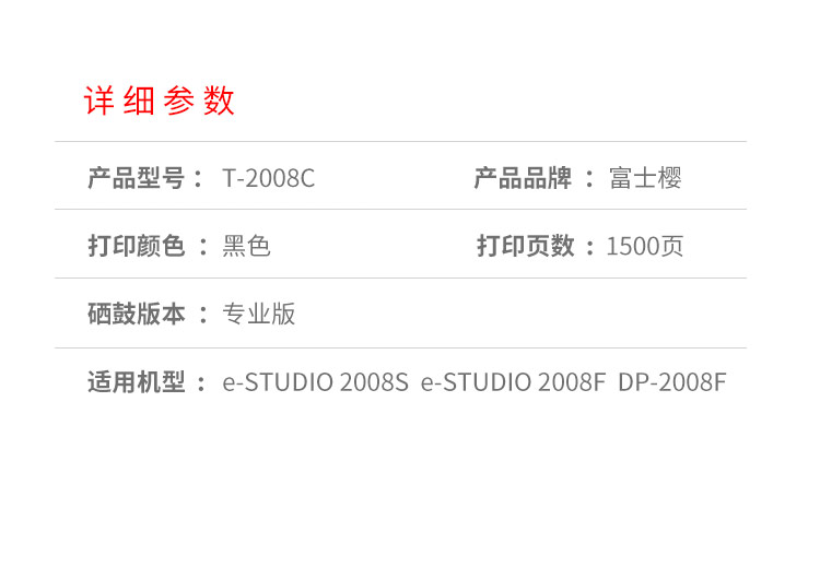 富士樱 T-2008C 黑色硒鼓 PS-ZT2008C适用东芝e-STUDIO 2008S 黑色