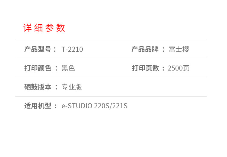 富士樱 T-2210/220S 黑色硒鼓 适用东芝e-STUDIO 220S/221S 黑色
