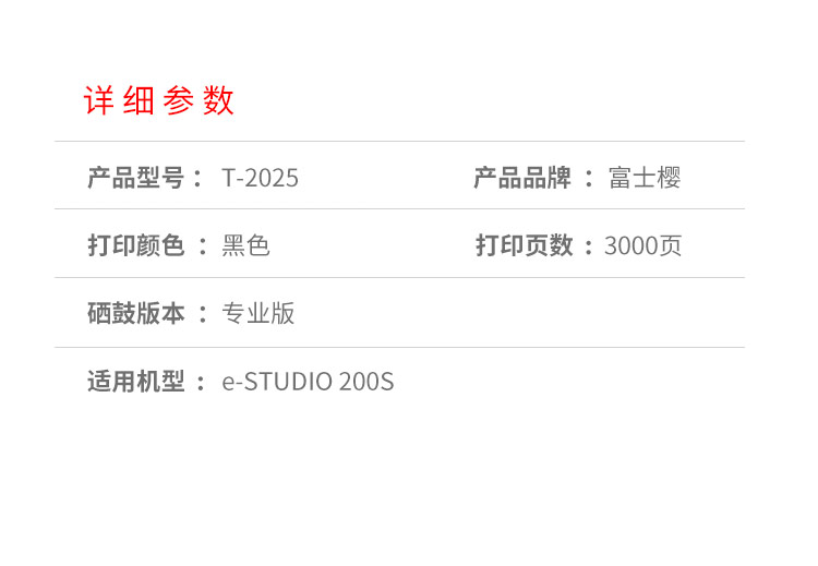 富士樱 T-2025/200S 黑色硒鼓 适用东芝e-STUDIO 200S TOSHIBA 黑色