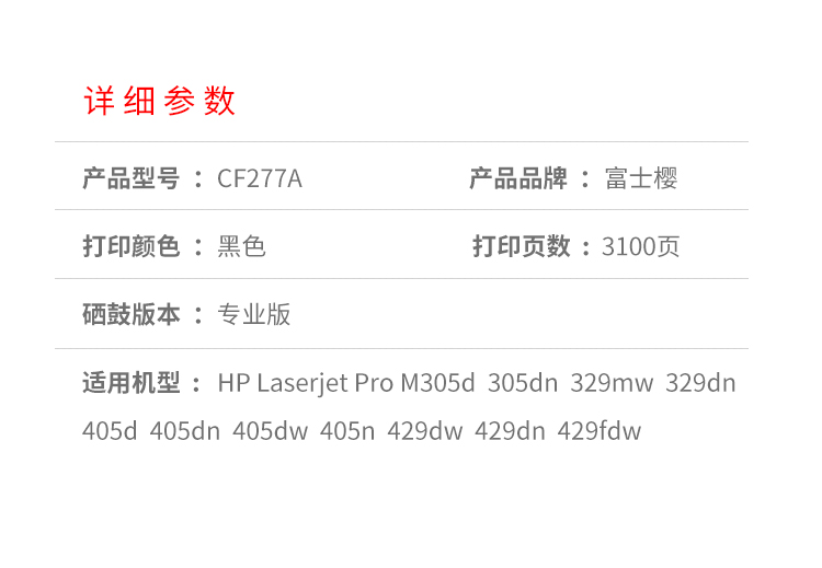 富士樱 CF277A硒鼓 带芯片适用惠普405d 305dn 329dw 429dw m429fdw 黑色