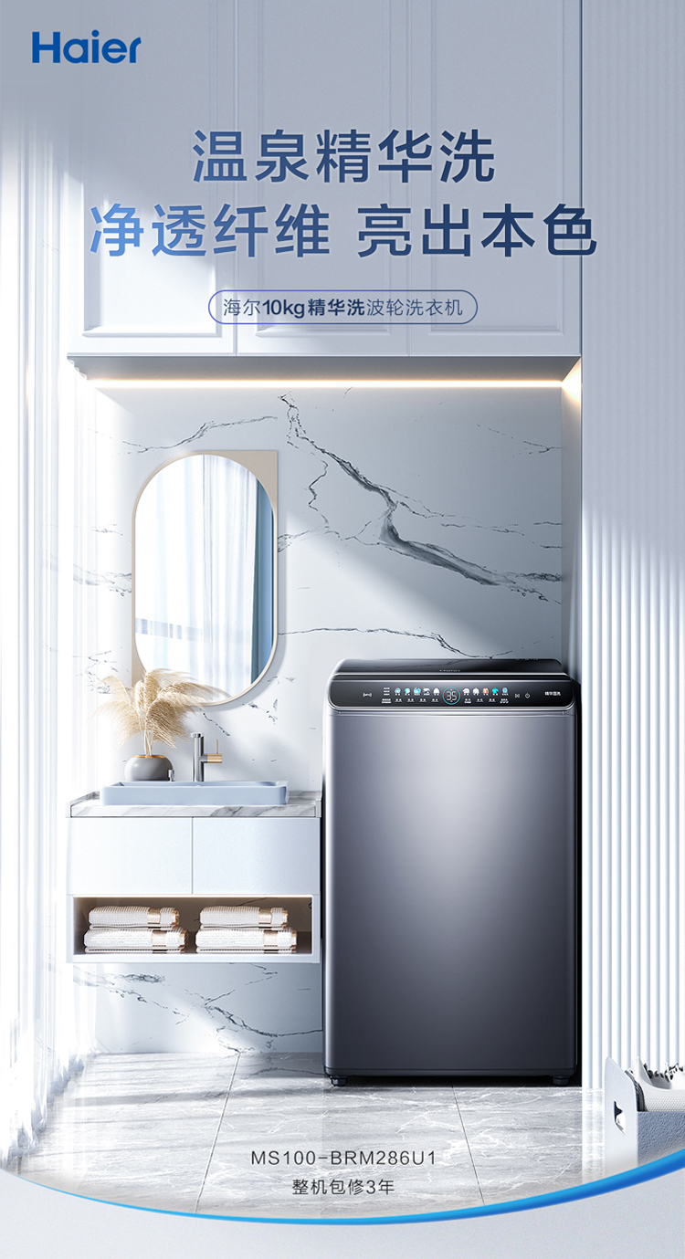 海尔 MS100-BRM286U1 变频10公斤波轮洗衣机 银色系 玉墨银 440