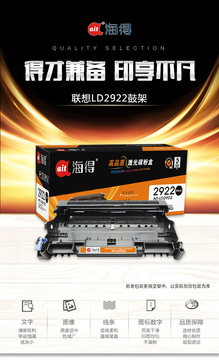 海得(ait) AIT-LD2922 专业版 打印量约12000页 适用联想 M7205 M7215 M7250 M7260 硒鼓 1.00 只/支 (计价单位:支) 黑色