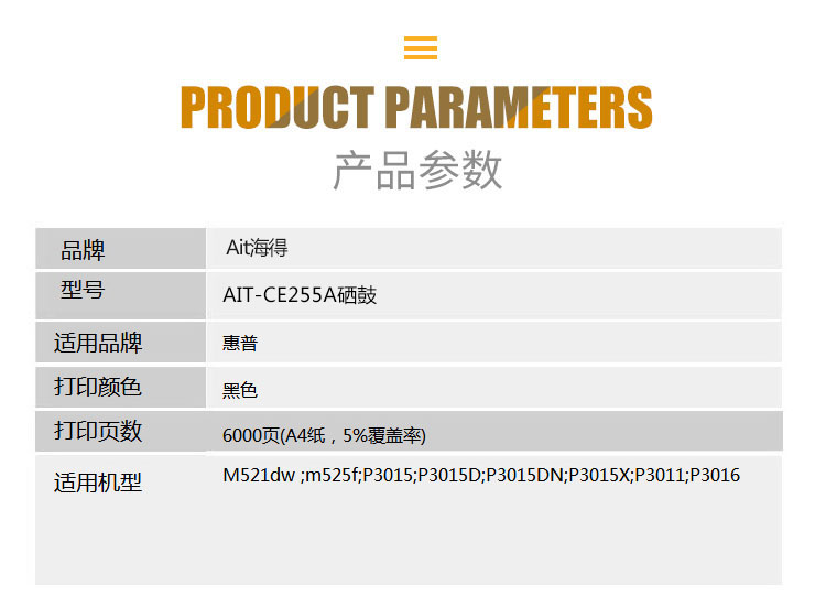 海得(ait) AIT-CE255A 专业版 打印量约6000页 硒鼓 1.00 只/支 (计价单位:支) 黑色