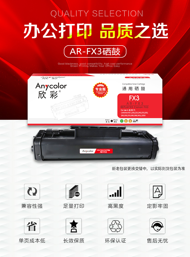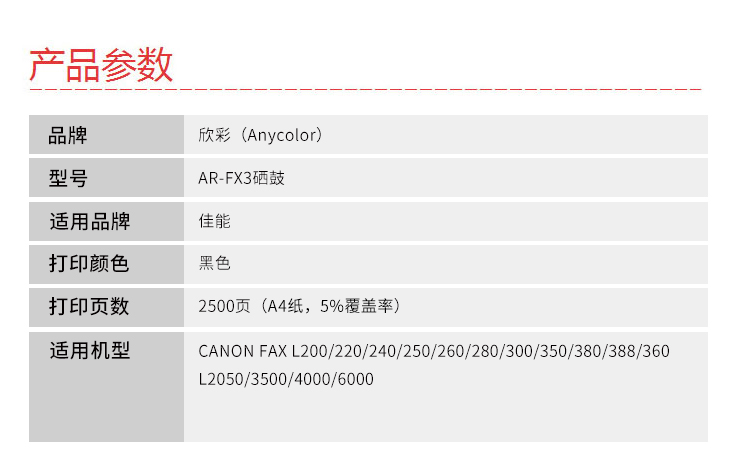 欣彩(Anycolor) AR-FX3专业版 打印页数:2500页 适用佳能FAX L200 220 240 250 260 硒鼓 (计价单位:只) 黑色
