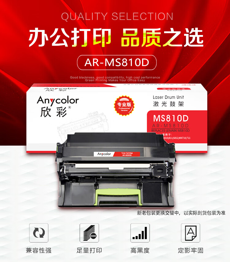 欣彩(Anycolor) AR-MS810D 打印量:100000页 适用利盟/MS810/811/S812/MX710/711/810/811/812 硒鼓鼓架 (计价单位:只) 黑色
