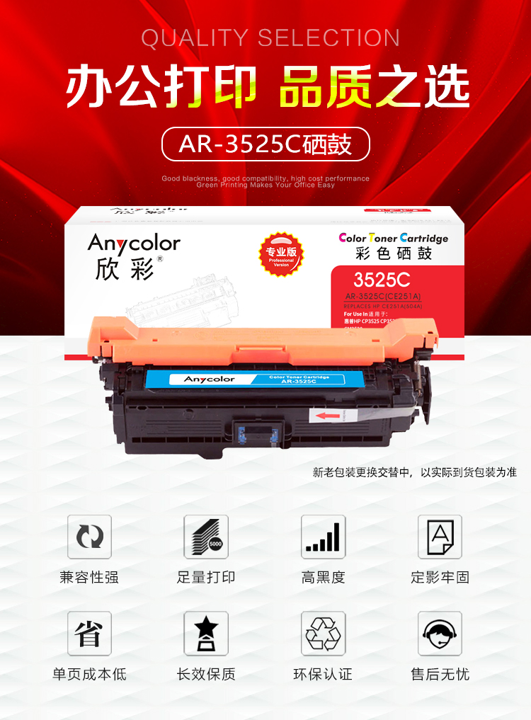 欣彩(Anycolor) AR-3525C 专业版 打印量:7000页 适用惠普HP CP3525/CP3525n/CP3525dn/CM3530 硒鼓 (计价单位:只) 蓝色