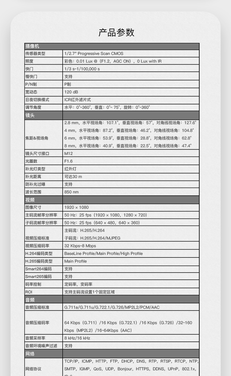 海康威视(HIKVISION) 2CD3326WDV3-I 200万高清星光夜视2.8mm 监控器摄像头 白色(单位:个)