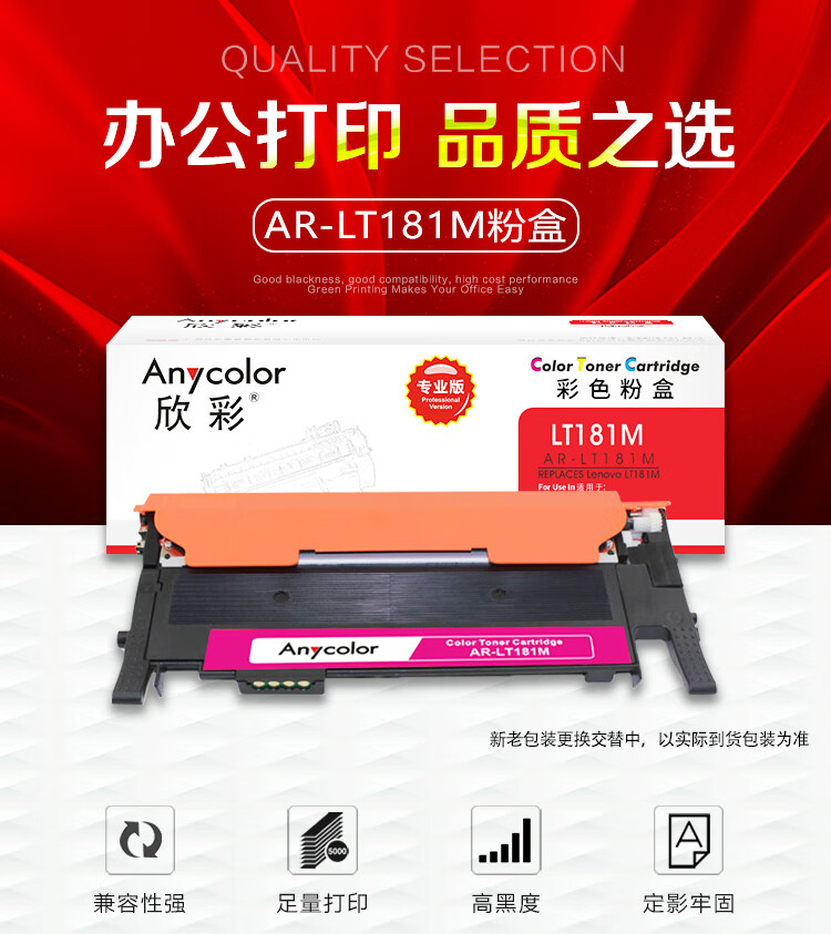 欣彩(Anycolor) AR-LT181M 1000页 适用联想Lenovo CS1811彩色打印机 粉盒 1.00 只/支 (计价单位:支) 红色