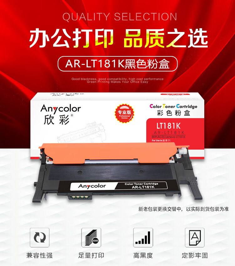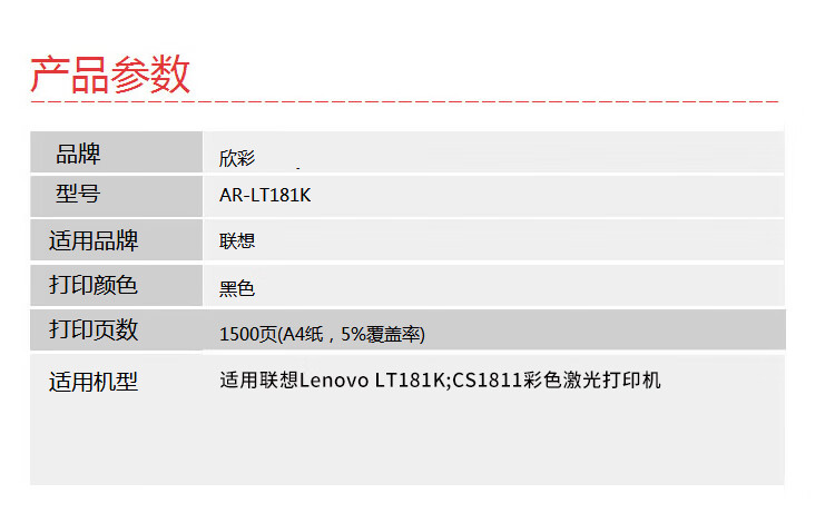 欣彩(Anycolor) AR-LT181BK 1500页 适用联想Lenovo CS1811彩色打印机 粉盒 1.00 只/支 (计价单位:支) 黑色