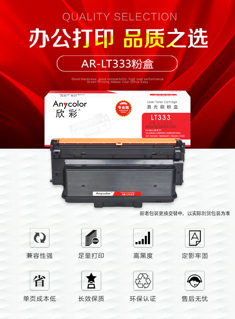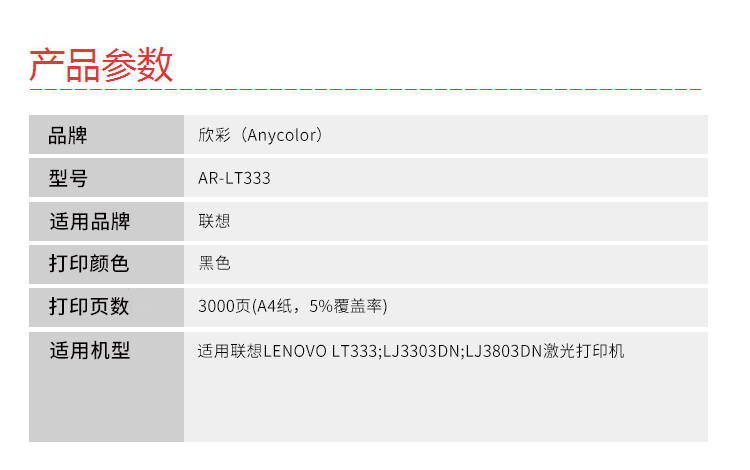 欣彩(Anycolor) AR-LT333 3000页 适用联想LENOVO LJ3303DN 粉盒 1.00 只/支 (计价单位:支) 黑色