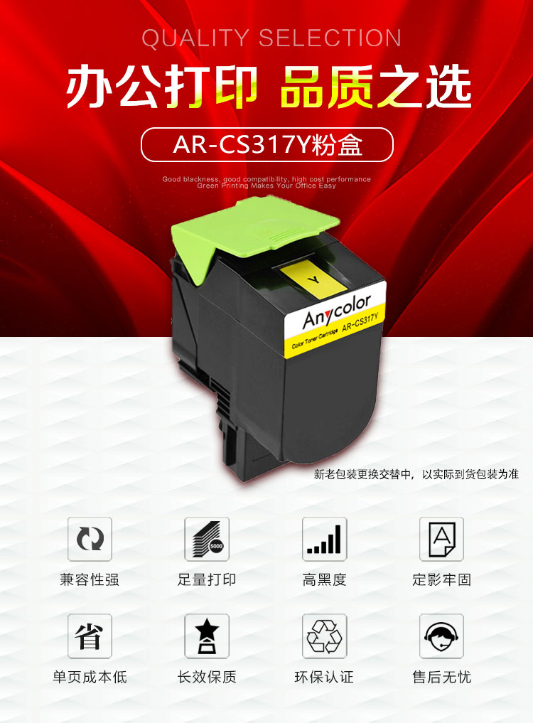 欣彩(Anycolor) AR-CS317Y 2300页 适用利盟LEXMARK CS317dn 粉盒 1.00 只/支 (计价单位:支) 黄色
