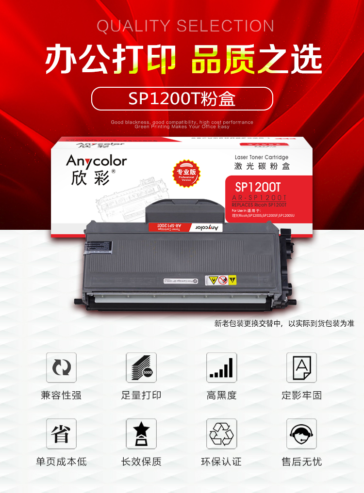 欣彩(Anycolor) AR-SP1200T 2600页 适用理光SP1200E 粉盒 1.00 只/支 (计价单位:支) 黑色