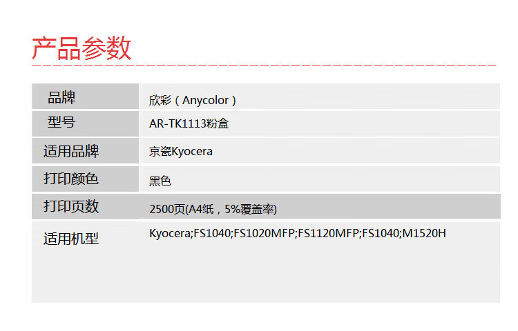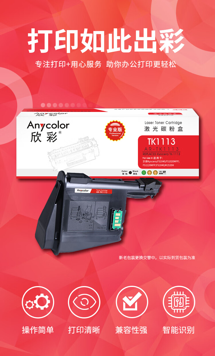 欣彩(Anycolor) AR-TK1113 2500页 适用京瓷KyoceraFS-1040 粉盒 1.00 只/支 (计价单位:支) 黑色