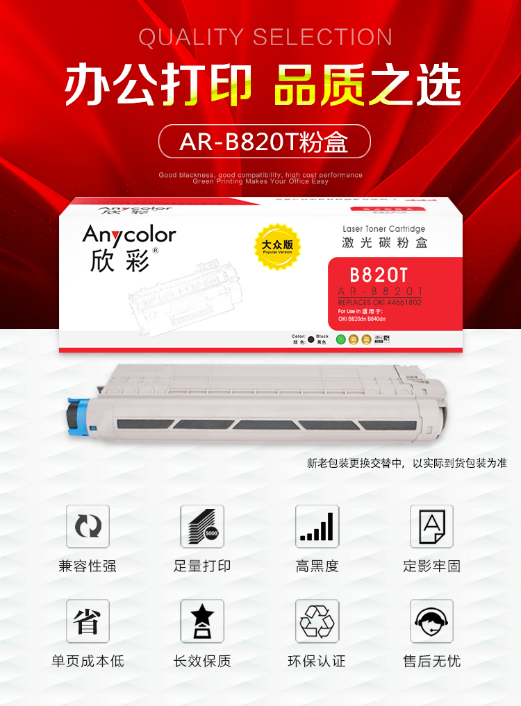 欣彩(Anycolor) AR-B820T 6000页 适用OKI B820dn B840dn 打印机 粉盒 1.00 只/支 (计价单位:支) 黑色