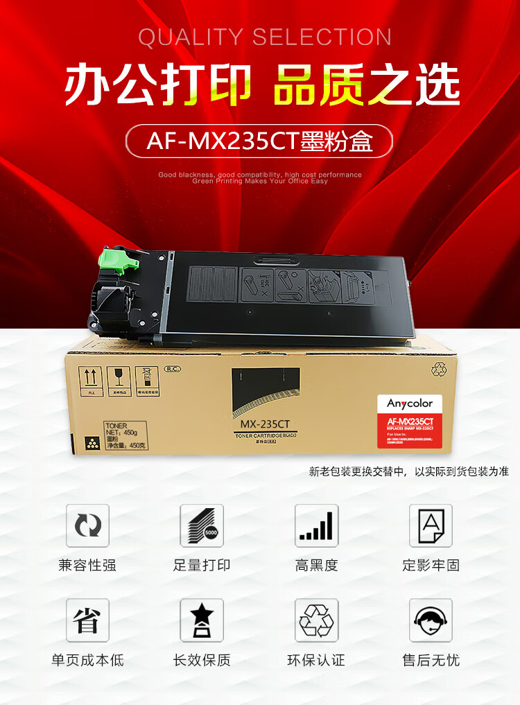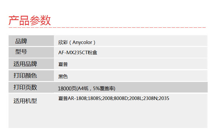 欣彩(Anycolor) AF-MX235CT 18000页 适用夏普sharp 粉盒 1.00 只/支 (计价单位:支) 黑色