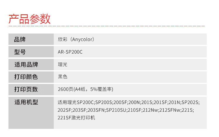 欣彩(Anycolor) AR-SP200C 专业版 大容量 2600页 硒鼓 1.00 只/支 (计价单位:支) 黑色