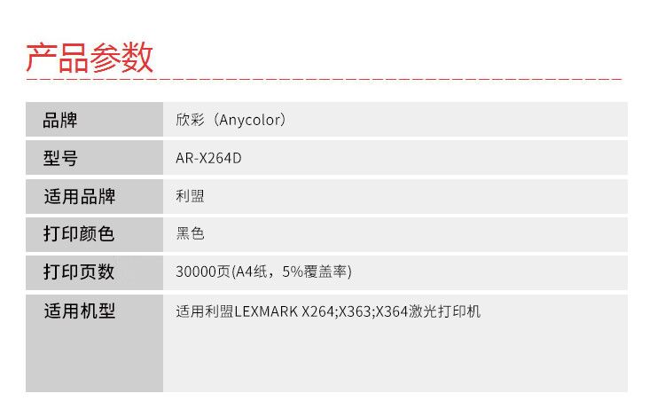 欣彩(Anycolor) AR-X264D 专业版 30000页 适用LEXMARK X264 鼓架 1.00 只/支 (计价单位:支) 黑色