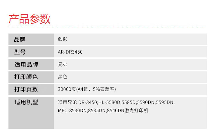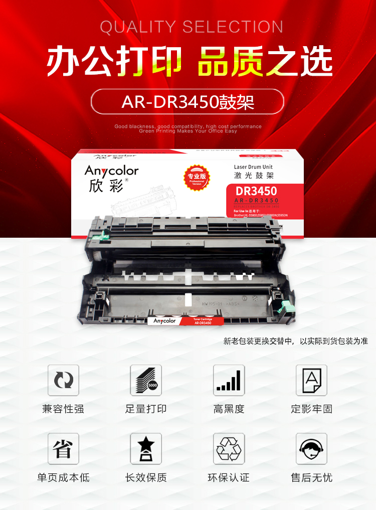 欣彩(Anycolor) AR-DR3450 专业版 30000页适用兄弟HL-5580D 鼓架 1.00 只/支 (计价单位:支) 黑色