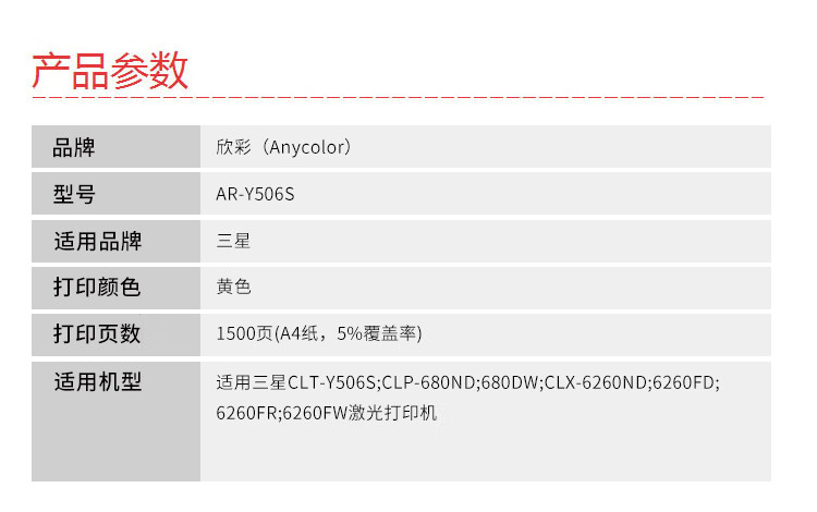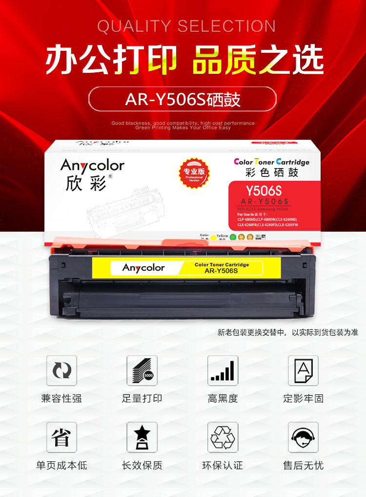 欣彩(Anycolor) AR-Y506S 专业版 1500页 适用三星CLP-680ND 硒鼓 1.00 只/支 (计价单位:支) 黄色