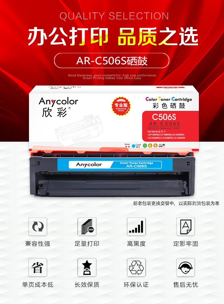 欣彩(Anycolor) AR-C506S 专业版 1500页 适用三星CLP-680ND 硒鼓 1.00 只/支 (计价单位:支) 蓝色