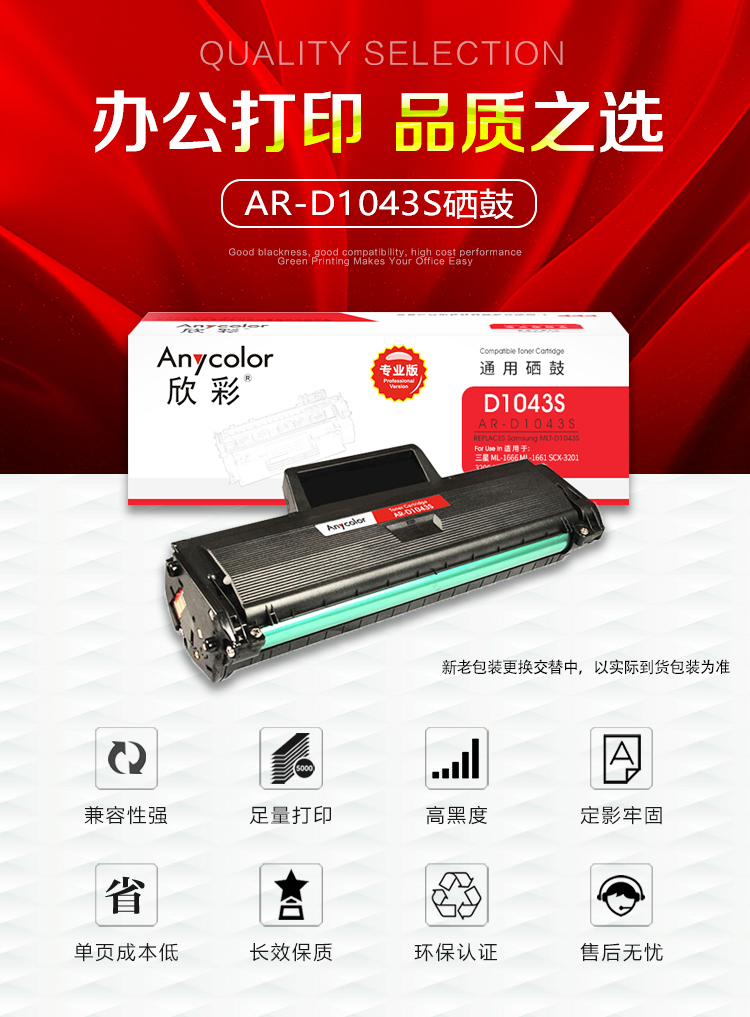 欣彩(Anycolor) AR-D1043S 专业版 1500页 适用三星 ML-1666 硒鼓 1.00 只/支 (计价单位:支) 黑色