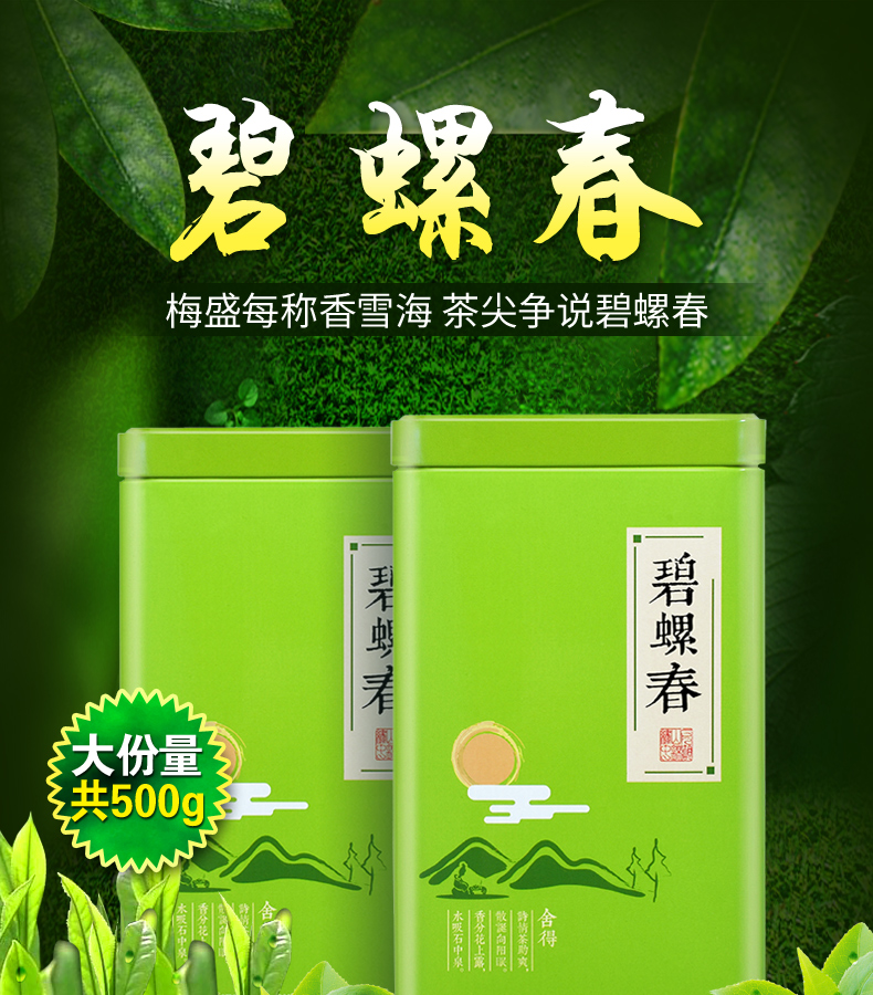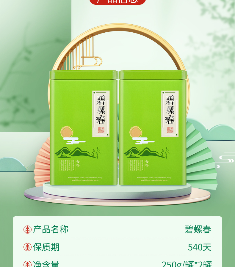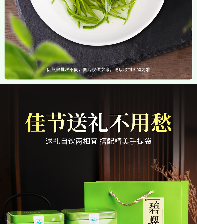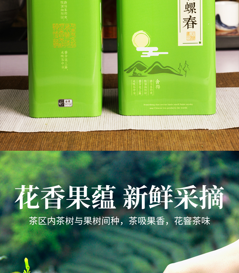 茗山生态茶 碧螺春 明前春茶 茶叶礼盒 500g双罐装单位:盒 绿色