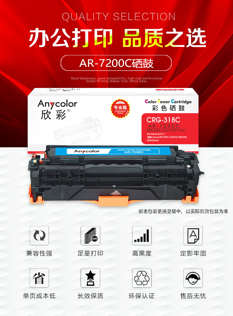 欣彩(Anycolor) AR-7200C 专业版2900页 适用佳能LBP7200cdn 硒鼓 1.00 只/支 (计价单位:支) 蓝色